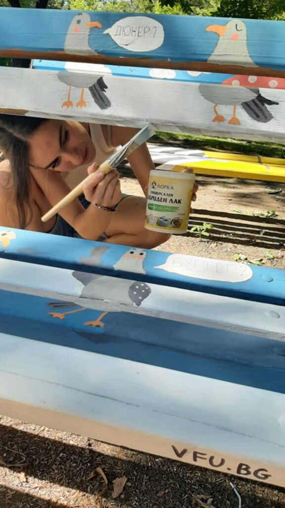 Студенти от 4-ти курс на специалност „Графичен дизайн“ на Варненския свободен университет “Черноризец Храбър” реализираха курсовите си проекти по дисциплината “Рисуване и стилизация” в реална градска среда. В неделя – 30 юли 2023 г., те декорираха пейки в пешеходната зона на бул. “Сливница”, в близост до Регионалния исторически музей и Община Варна. Студентските проекти са съгласувани и одобрени от Експертния съвет за устройство на територията.