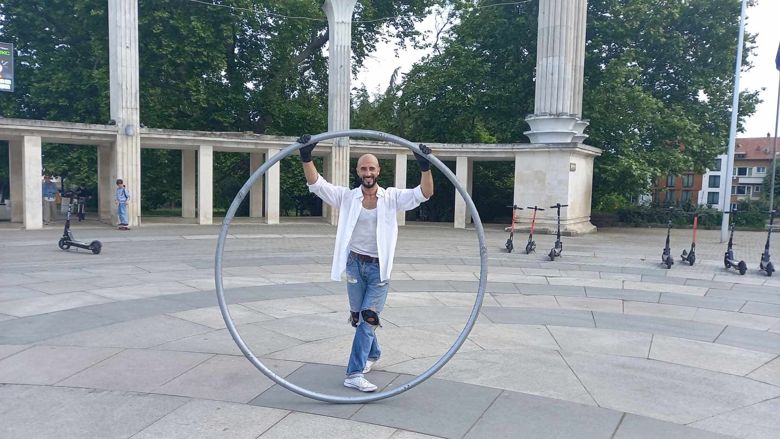 Сега живея във Варна, по принцип живя в различни държави и градове. Казвам се Тим”, сподели лъчеразният уличен артист пред репортер на СайтЪТ.