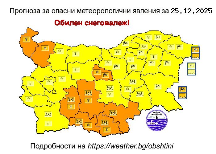 Коледният ден ще донесе сериозно влошаване на времето в България. На 25 декември страната ще бъде обхваната от обилни валежи, силен вятър и осезаемо застудяване, като в много райони дъждът ще преминава в сняг. Очакват се виелици, навявания и опасни пътни условия, особено в Северна и Западна България и в планините.