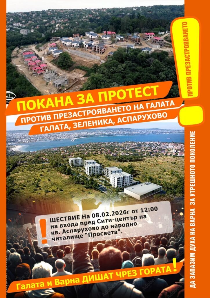 Жители на варненските райони Галата, Зеленика и Аспарухово организират протест срещу продължаващото презастрояване и унищожаването на горските терени в южната част на Варна.