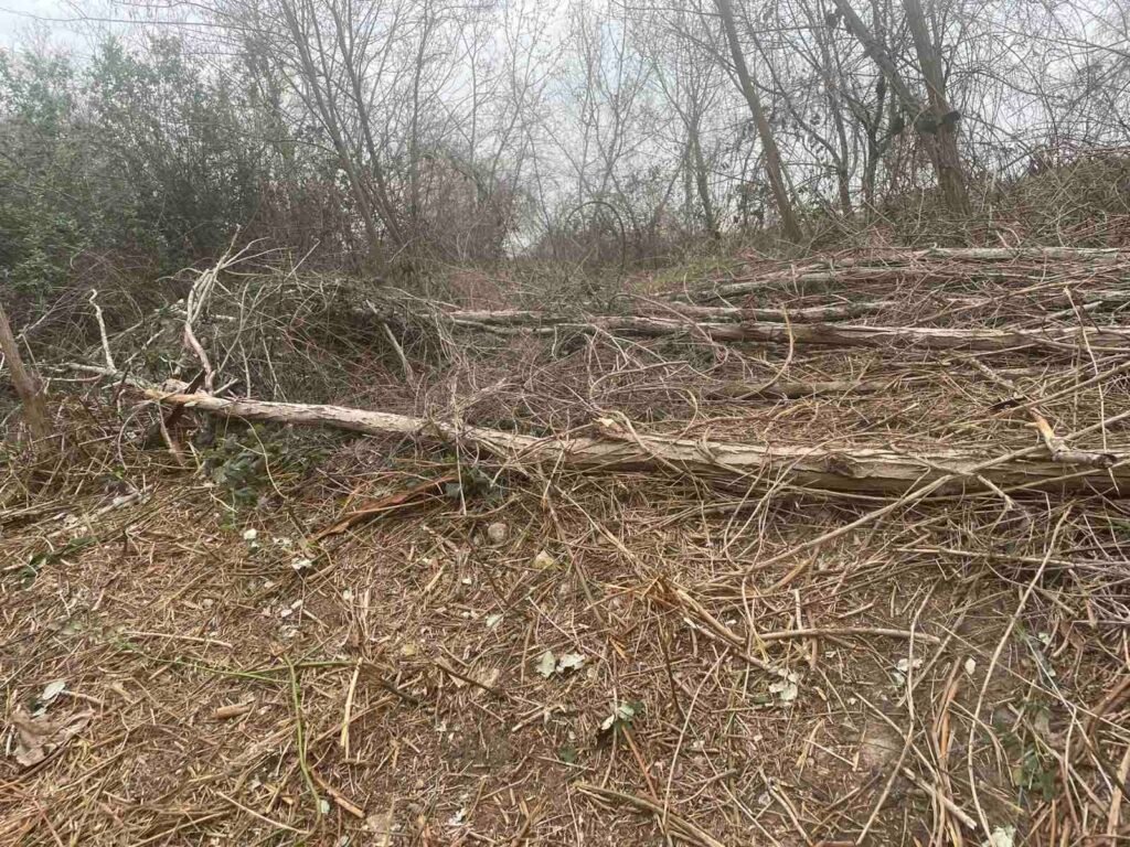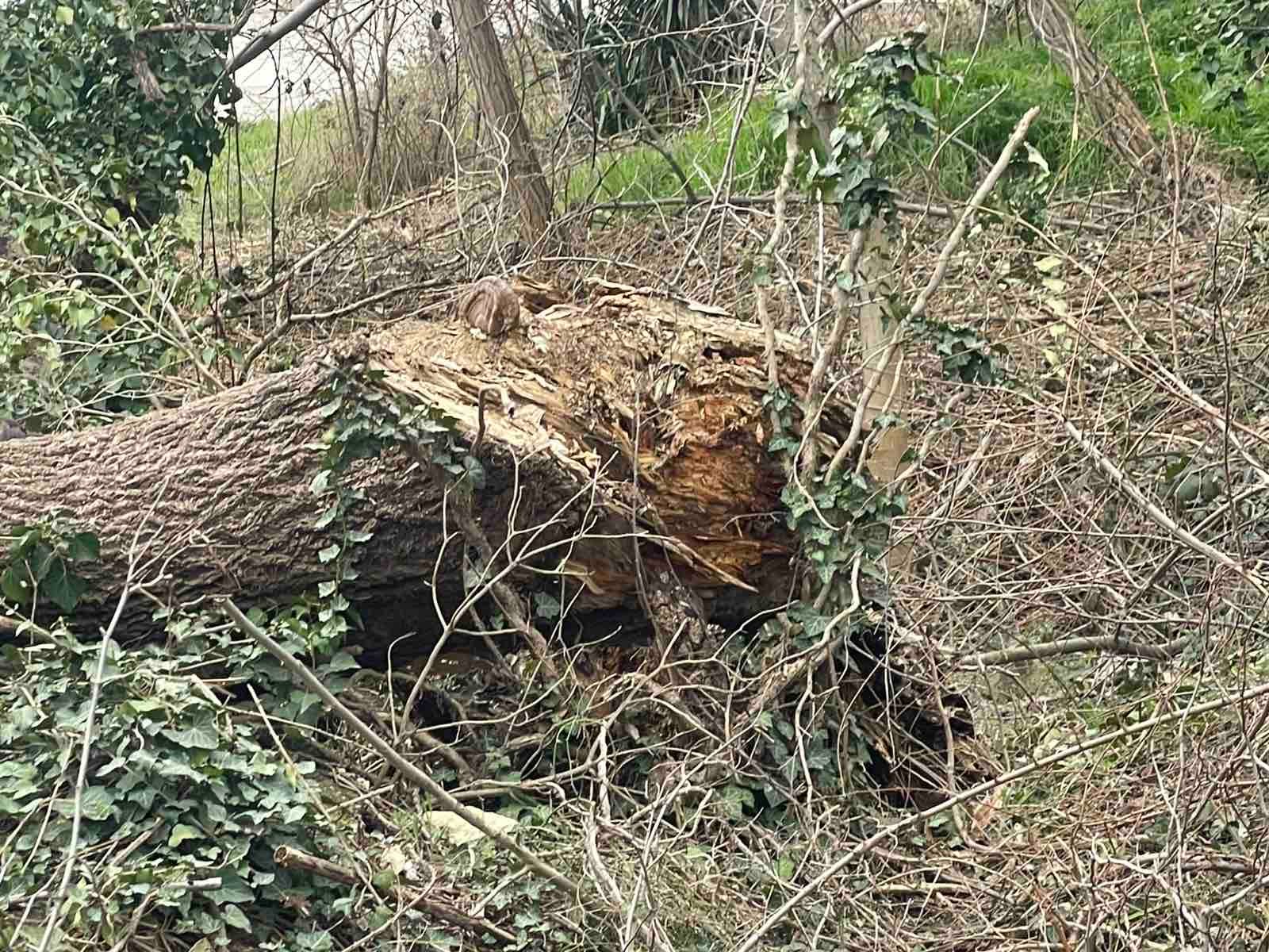 В имота има множество паднали дървета, като е констатирано, че те не са отрязани, а изкоренени вследствие на предходни бури. По време на проверката на служителите почистващите дейности са продължили, тъй като паразитните видове са обхванали значителна част от дървесно-храстовата растителност. Установени са също сухи клони и дървета, които предстои да бъдат премахнати поради риск от падане – част от тях са наклонени или се подпират едно в друго.