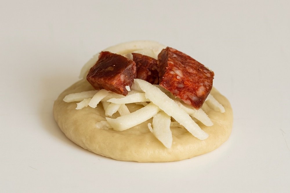 - Откъсвайте парчета с големината на мандарина, оформете топчета и леко ги разплескайте.