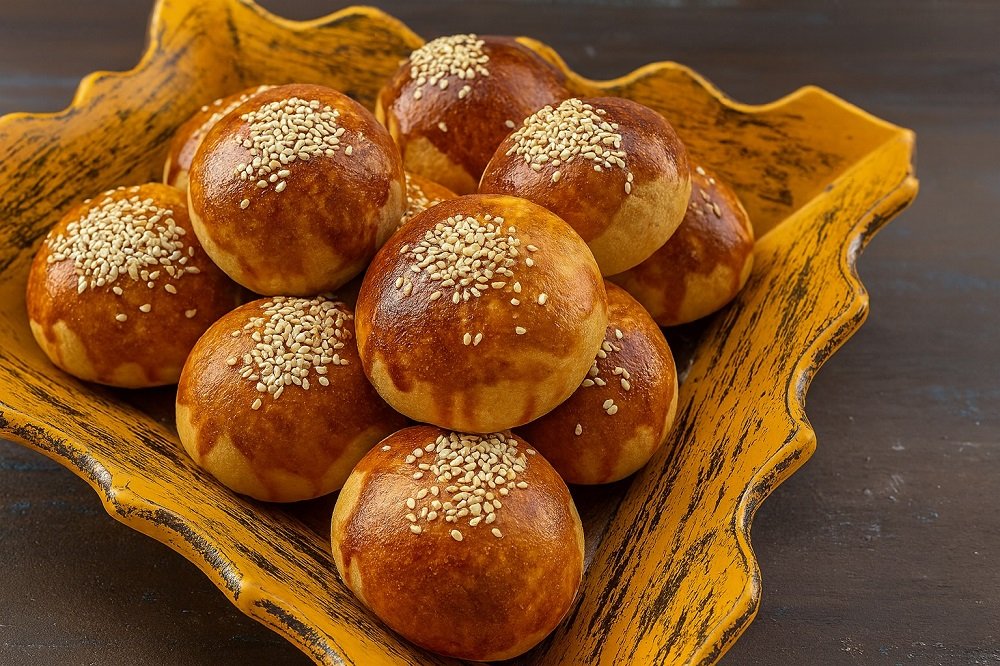 - Намажете с жълтък, поръсете със сусам.