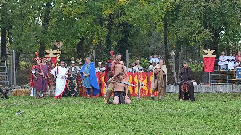 - Представяне на участниците и начало на гладиаторските игри. Гладиатори пресъздават моменти от историята на Рим и живота на траки и скити.