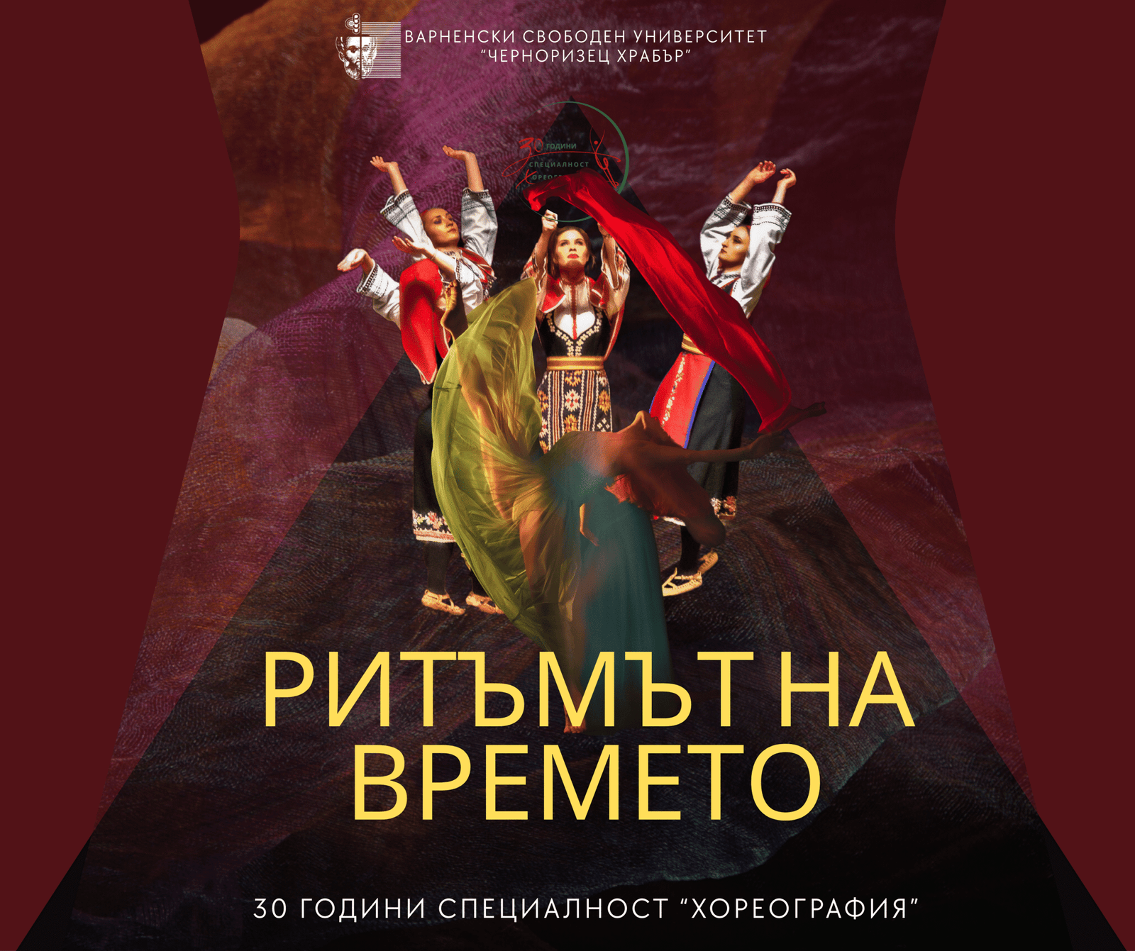 Специалност „Хореография“ на Варненския свободен университет „Черноризец Храбър“ ще отбележи своята 30-годишнина с концерт-спектакъл „Ритъмът на времето“ на 19 юни от 18:30 ч. в зала 1 на Фестивалния и конгресен център – Варна. Сцената ще се изпълни с енергията на младите хореографи, които ще представят най-ярките си творчески проекти и сценични постижения.