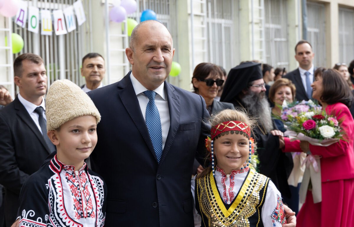 Президентът пожела успех на първокласниците, като по думите му, днешният празничен ден е най-вълнуващ именно за тях, които за първи път ще прекрачат училищния праг, както и за техните родители. Знам, че солидните познания тук отварят широко вратите на света за вас, обърна се президентът към дванайсетокласниците. Знам, че вече сте избрали своята житейска посока, но където и по света да изберете да продължите своето образование, носете България в сърцето си и не забравяйте заветите на своите учители, подчерта Румен Радев. Държавният глава отбеляза и значимата и градивна роля на родителите и изрази благодарност за усилията им в подкрепа на образователния процес.
