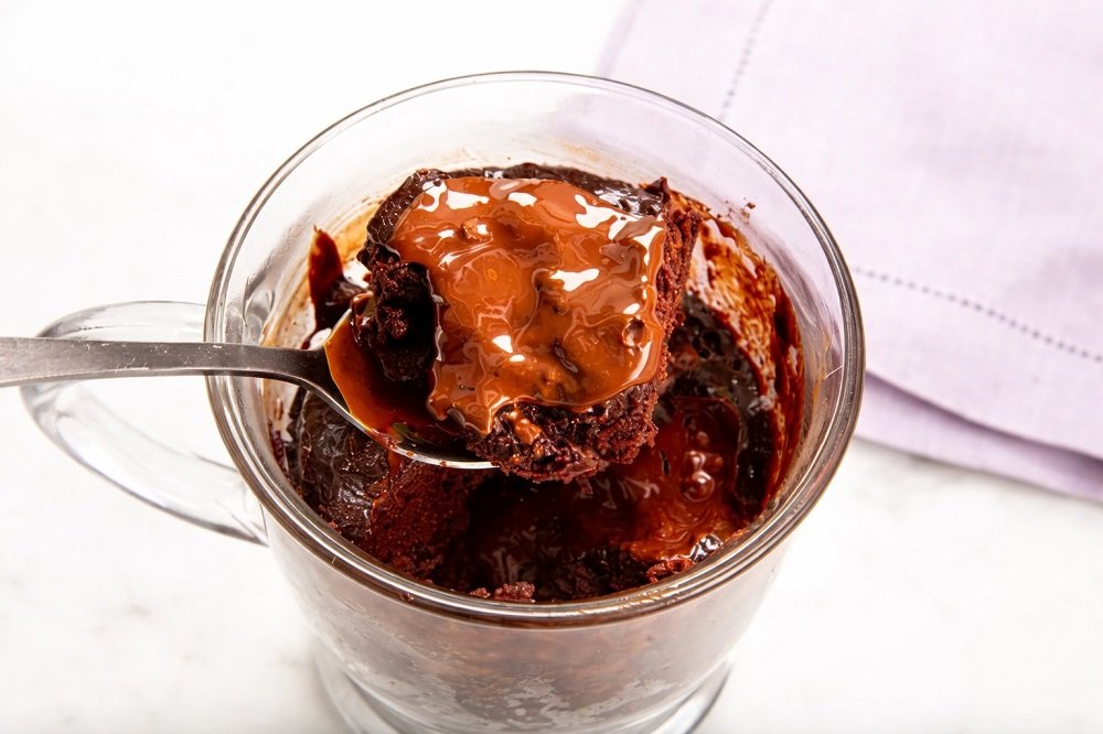 Този тип десерт не търси златиста коричка или перфектна структура – идеята му е да бъде топъл, сочен и разтапящ се, подобно на мини шоколадов суфле, приготвен за минути.