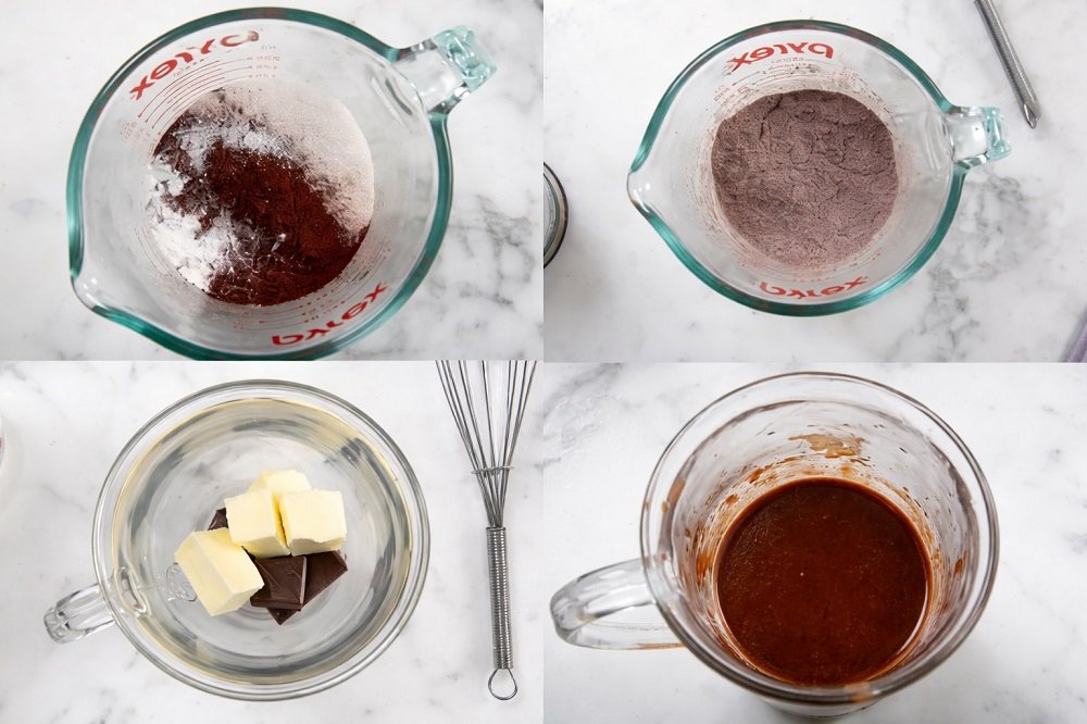 - В купичка смеси брашното, захарта, какаото, бакпулвера и солта.