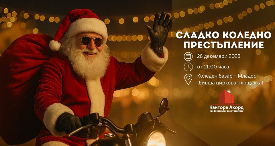 Кантора „Акорд“ – професионален домоуправител, кани децата на Варна на специалното празнично преживяване „Сладко коледно престъпление“. В инициативата участват Община Варна – район „Младост“, мото клуб „Диви деца“, мото клуб „Номади“, както и приятели и съмишленици на организаторите, които ще се погрижат за коледното настроение на малките посетители.
