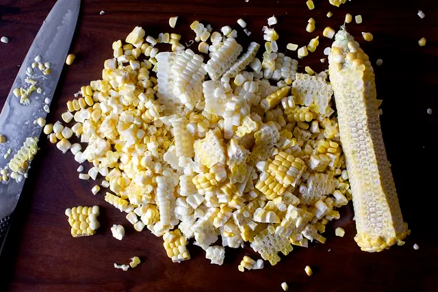 • 3 чаени чаши прясна царевица (от около 3 средни кочана или 2 бурканчета/консерви добре отцедена царевица)
