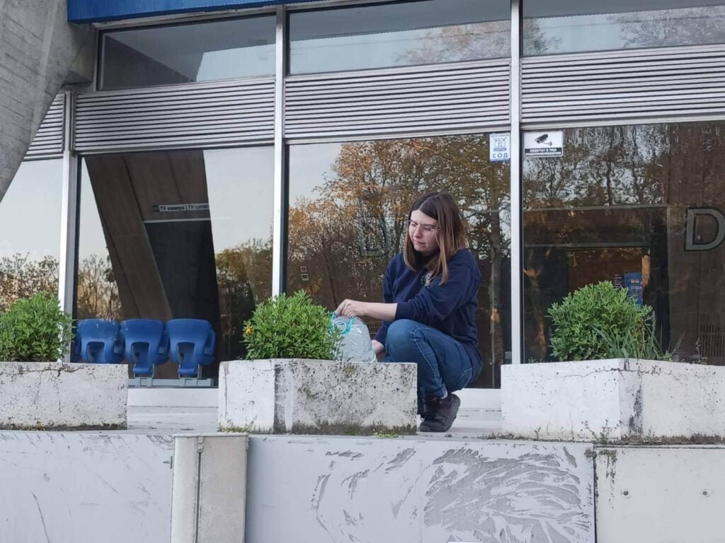 Най-активна по-време на Световната купа в събирането на пластмасовите бутилки беше Стела Илиева. Намираме Стела до саксиите с цветя около Двореца на културата и спорта, които полива за пореден път.