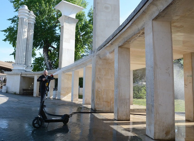 Почистването започна късно снощи с измиване на пешеходната зона, водеща до пл. Независимост, самия площад и ларгото към Морската градина. Почистени с препарати и дезинфекцирани бяха пейки и кошчета. Кметът Благомир Коцев контролираше дейностите по почистване в центъра на града още от полунощ.