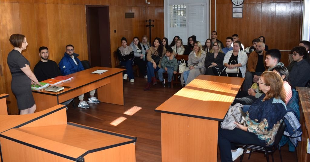 Гостите научиха какви са правилата за достъп в сградата, преминаха задължителната проверка и бяха поканени в най- голямата зала на съда, в която се разглеждат граждански дела. Студентите разбраха кой къде стои в съдебната зала и какво се очаква да бъде поведението на страните и свидетелите по време на заседание.