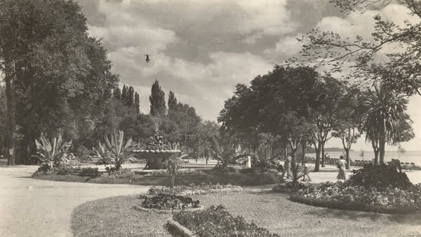 В средата чрез картонени фигури е представена централната част на Морската градина. На преден план пред погледа на зрителя се открива фонтанът сред живописните и красиви алеи, целите в зеленина и цветя. На заден план се вижда морето, чиято синева се слива с тази на небето.