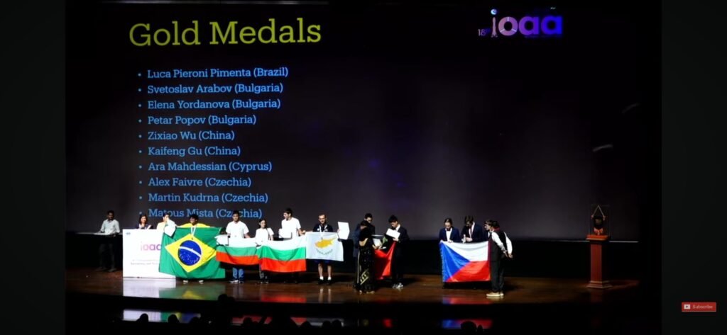 Златните медали спечелиха Светослав Арабов (9 клас, МГ, Варна), Елена Йорданова (11 клас, МГ, Русе) и Петър Попов (11 клас, ПМГ, Гоце Делчев). Сребърното отличие заслужи Лора Лукманова (12 клас, СМГ). Почетната грамота е за Атанас Митрев (11 клас, ЕГ, Кърджали). Техни ръководители са Никола Каравасилев (Съюз астрономите в България и НУЦК) и Стефан Иванов (Съюз астрономите в България).