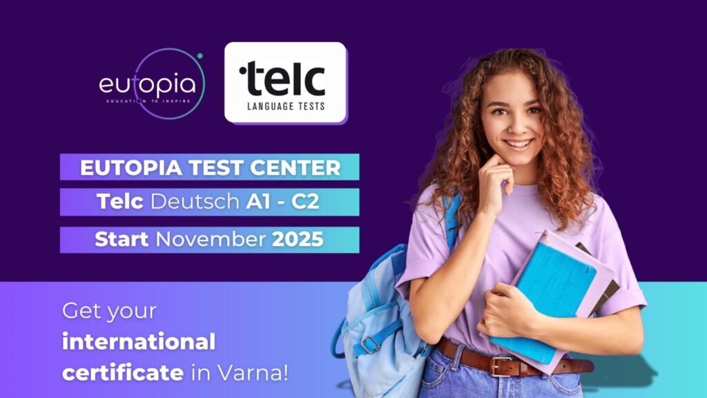 Ученици и възрастни могат да се сертифицират по международно признат стандарт – без да пътуват до София или чужбина. От октомври 2025 г. Варна вече има своя официален Тelc изпитен център – EUTOPIA, лицензиран към Telc gGmbH, Германия, член на ALTE (Association of Language Testers in Europe). Това означава, че кандидатите от Североизточна България вече могат да получат международно признат немски […]