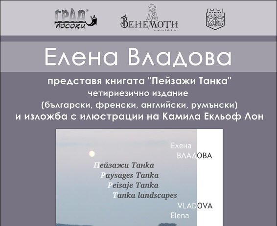 Елена Владова представя на 18 ноември във Варна книгата си „Пейзажи танка”, четириезично издание на български, френски, английски и румънски език, съобщи авторката за СайтЪТ. По време на премиерата ще бъде експонирана и изложба с произведенията на художничката Камила Екльоф Лон, включени като илюстрации. Представянето ще се състои на 18 ноември (вторник) от 19,00 часа в Behemoth Creative […]