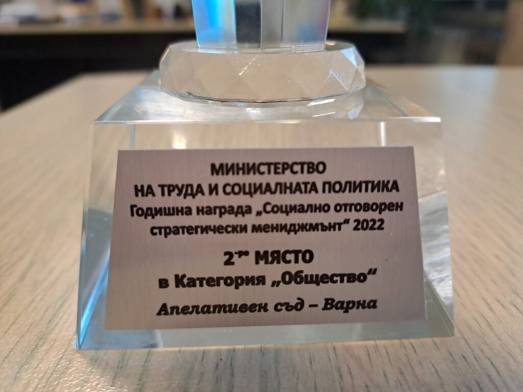 Апелативният съд във Варна получи приз за социално отговорнаорганизация научи СайтЪТ от споделен коментар на Ванухи Аракелян, председател на съда. “Позволете ми да споделя публично приза на Апелативен съд Варна за социално отговорна организация, получен от Министерството на труда и социалната политика. Правя го по няколко причини: 1. Много рядко съд е награждаван. Особено за […]