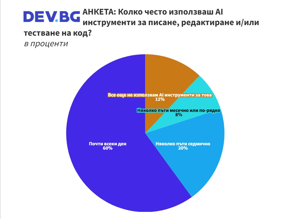 В обществото използването на ИИ също нараства в области като образование, администрация, финанси и ИТ. Анкета на dev.bg, сочи че над 88% от ИТ специалистите използват ИИ.