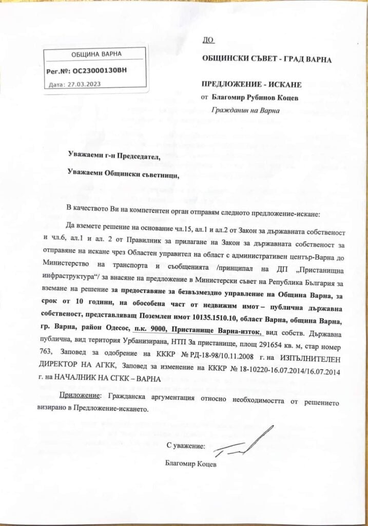 В продължение на близо година г-н Коцев бе областен управител на Варна и за някои хора може би буди недоумение факта защо през този период не е отправил такова предложение до община Варна и назначилия го Министерски съвет относно въпросната територия! Може би защото не е бил в предизборна кампания?