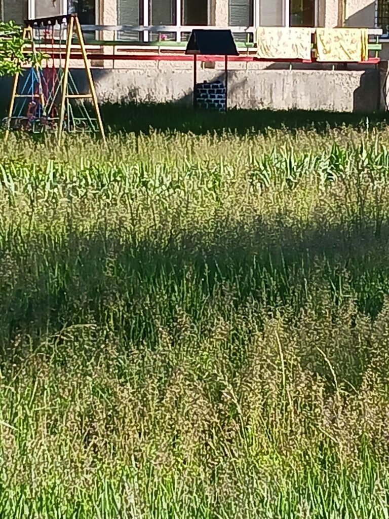 „Община Шумен, къде сте? Вижте как изглежда в средата на май дворът на детското заведение! Кой допуска и контролира това – децата да са сред кърлежи и змии?!“, пише тя възмутено.