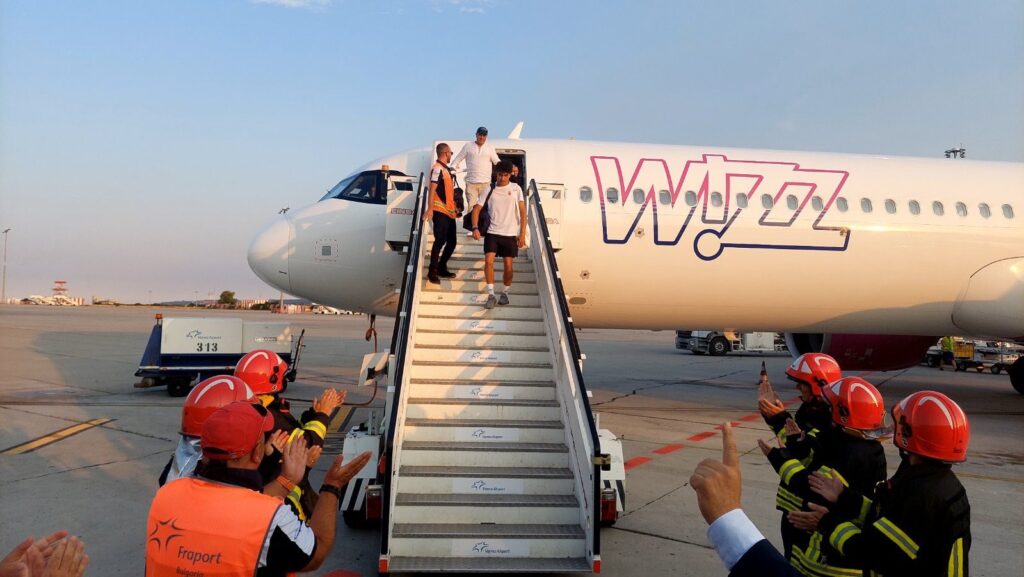 Шампионът пристигна с полет от британската столица и бе официално приветстван на самата писта от директора на Летище Варна Димитър Костадинов, който му поднесе личните си поздравления, както и подарък от името на целия екип на летището.