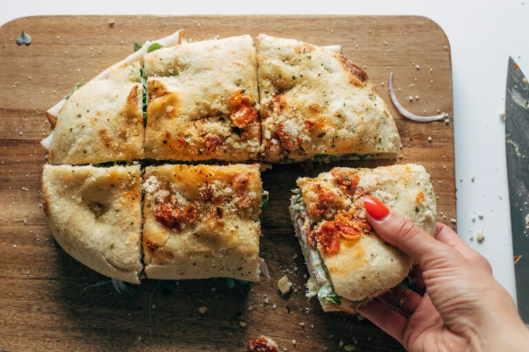 Меката и ароматна фокача със сушени домати се превръща в основа на невероятен сандвич – с песто майонеза, пуешко месо, сочни домати, червен лук и свежи зелени салати. Лесен за приготвяне, изключително вкусен и почти начин на живот!