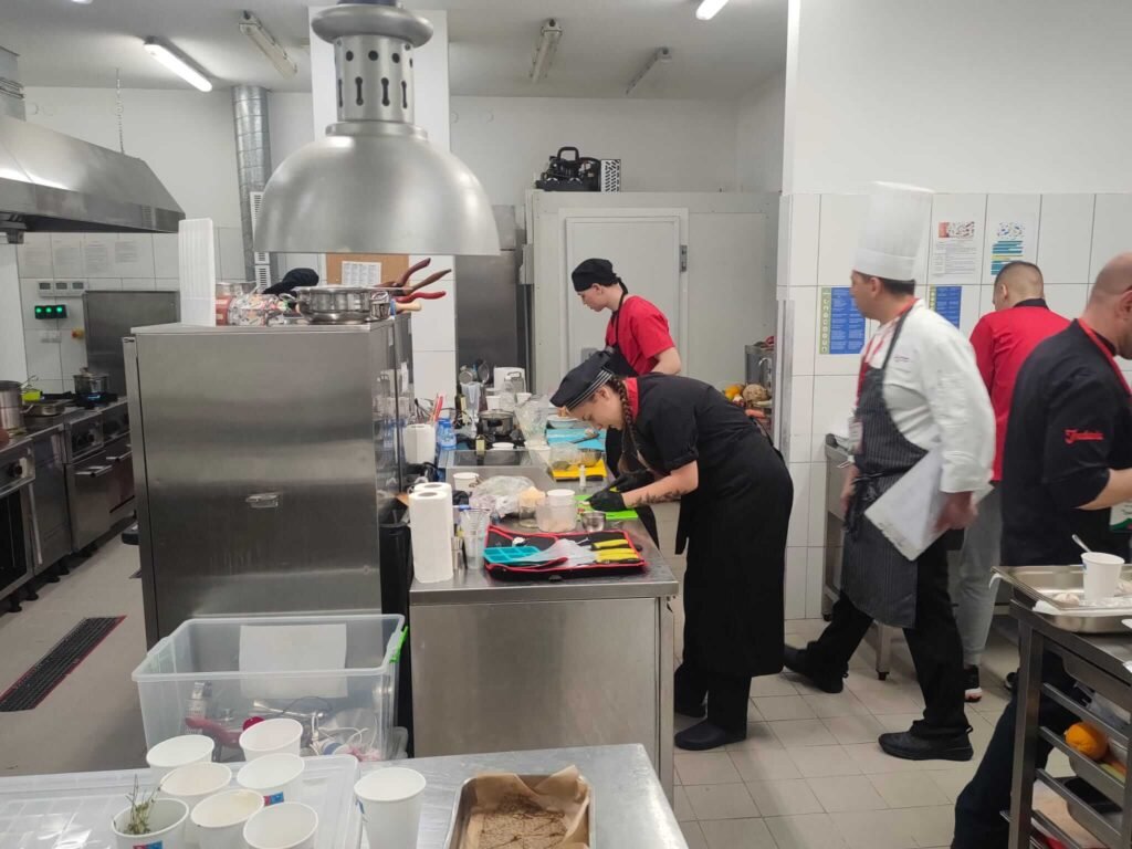В същото време участниците в състезанието „Най-добър млад сервитьор“ ще сервират ястия на реални гости в ресторант, като презентират съставките и технологията им, и разговарят на чужд език.