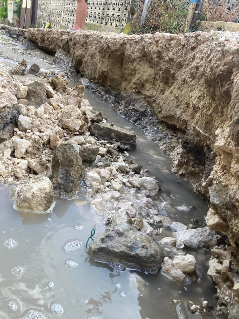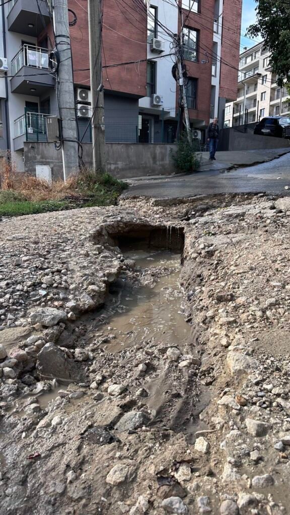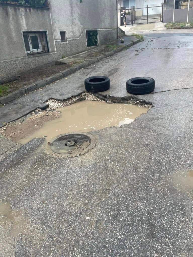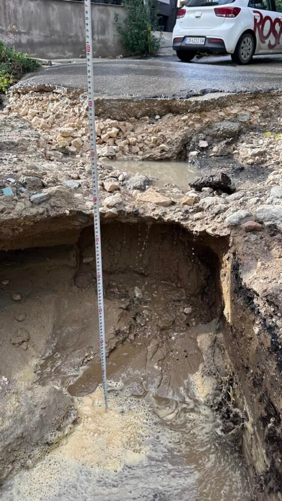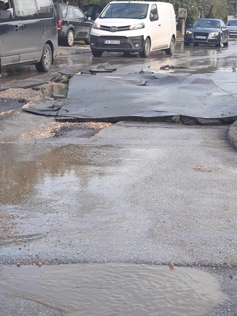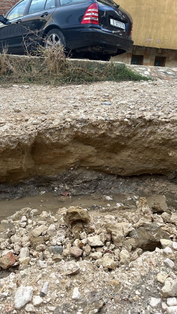 “Отсечка от улицата “Д-р Любен Попов” е напълно разрушена, което прави преминаването на леки автомобили невъзможно. Очевидци свидетелстват за много закъсали и повредени автомобили заради ямите, които на места достигат повече от половин метър.