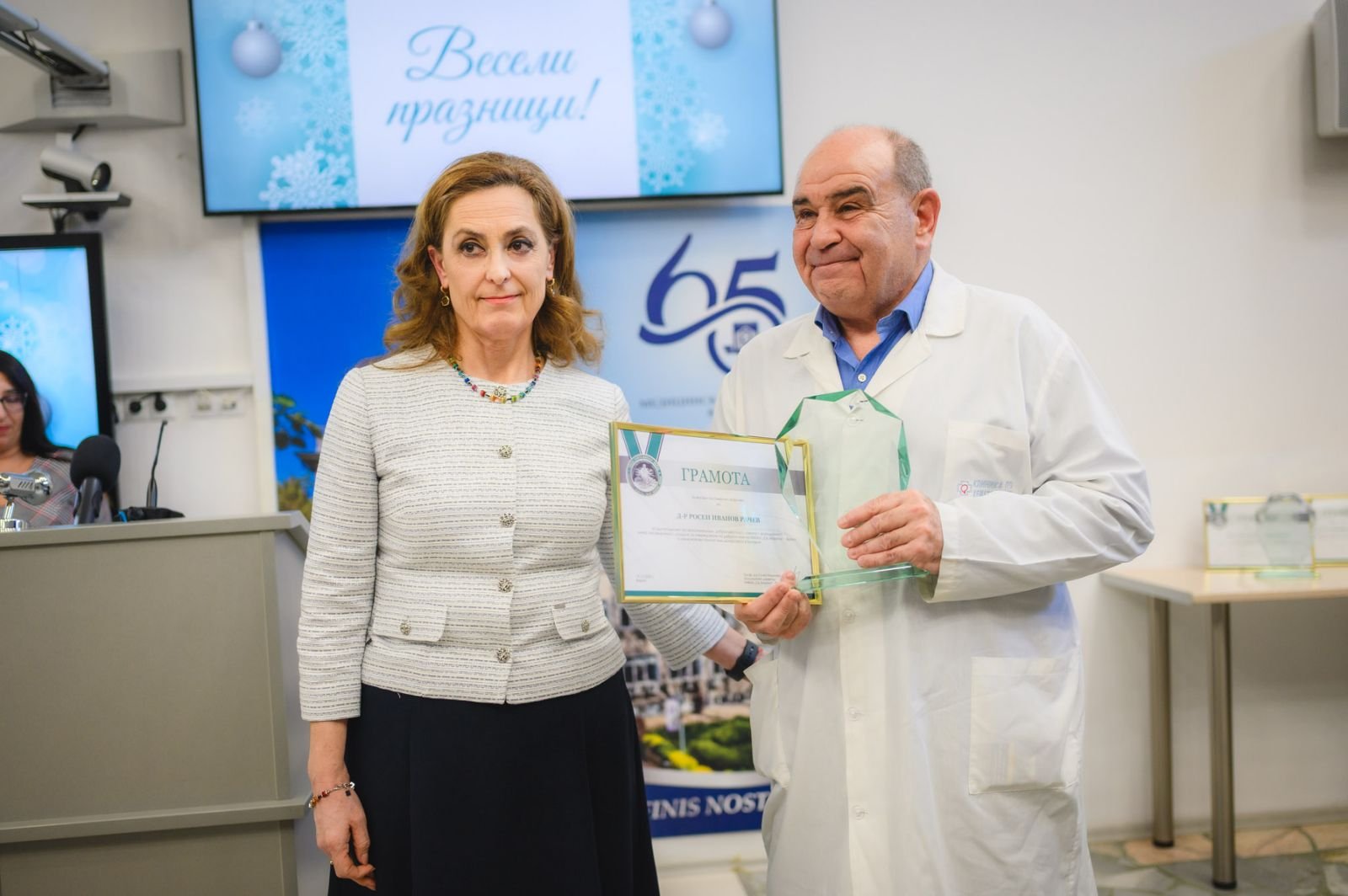 На тържествен медицински съвет, проведен в навечерието на Рождество Христово, в знак на благодарност за дългогодишната безупречна работа, постигнатите високи резултати и висок професионализъм, проф. д-р Силва Андонова, изпълнителен директор на УМБАЛ „Св. Марина“, награди с почетен плакет и грамота д-р Росен Рачев от Клиниката по клинична хематология, инж. Светослав Стоянов – началник-отдел „Аварийни ремонти и поддръжка на сградния фонд“, медицинска сестра Нели Григорова от Клиниката по вътрешни болести и медицинска сестра Гергина Каишева от Клиниката по съдова хирургия. С отличия бе наградена и медицинска сестра Станка Петрова от Първа клиника по кардиология.