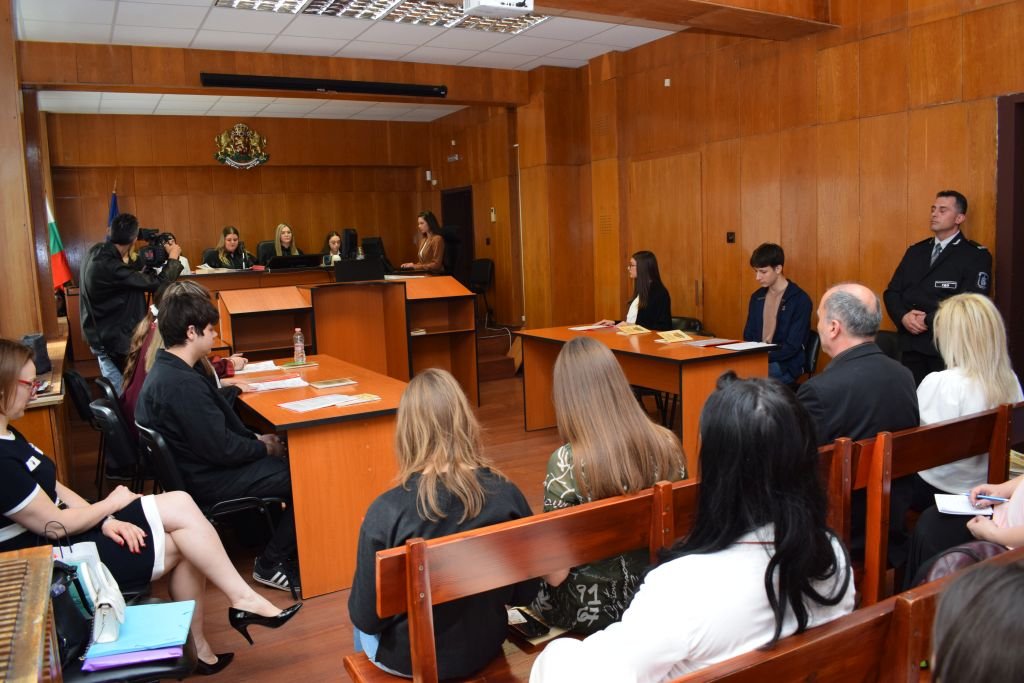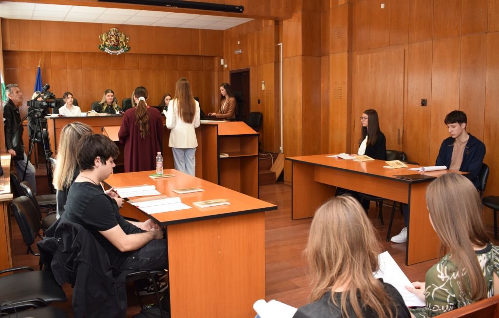 Симулираният съдебен процес се проведе в рамките на образователната програма „Съдебна власт – информиран избор и гражданско доверие. Отворени съдилища и прокуратури“.