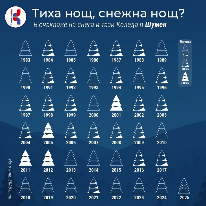 В Шумен преди все пак е имало поне някаква снежна покривка в ⅔ от годините, но от скоро безснежието по Коледа вече е правило, а не изключение.
