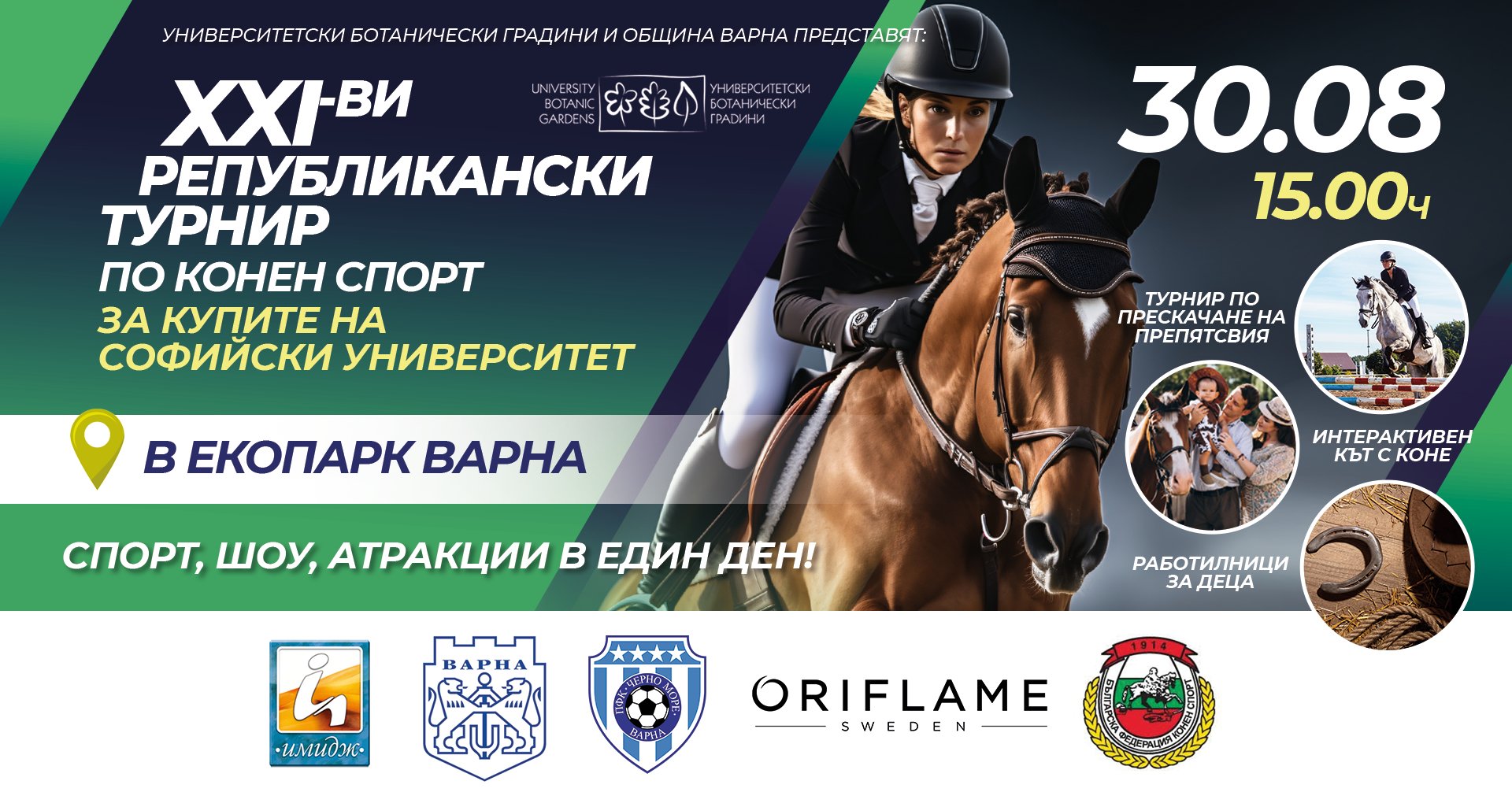 Университетска ботаническа градина – Екопарк Варна и Община Варна представят XXI-то издание на Републиканския турнир по прескачане на препятствия за купите на Софийски университет „Св. Климент Охридски“.