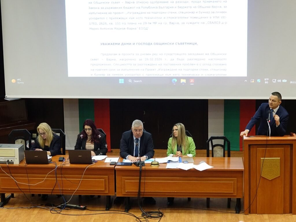 Решението, взето с пълно единодушие от 43 гласа „за“, предвижда предоставяне на почти 4,2 млн. евро за изпълнение на проект „Изграждане на подпорни стени, стационар и бункер за линеен ускорител с прилежащи към него технически и спомагателни помещения в УПИ VII-1783, 2628, кв. 151 по плана на 29-ти МР на гр. Варна“. Част от средствата ще бъдат осигурени от преходен остатък от 2025 г. и приходи от местни дейности за 2026 г.