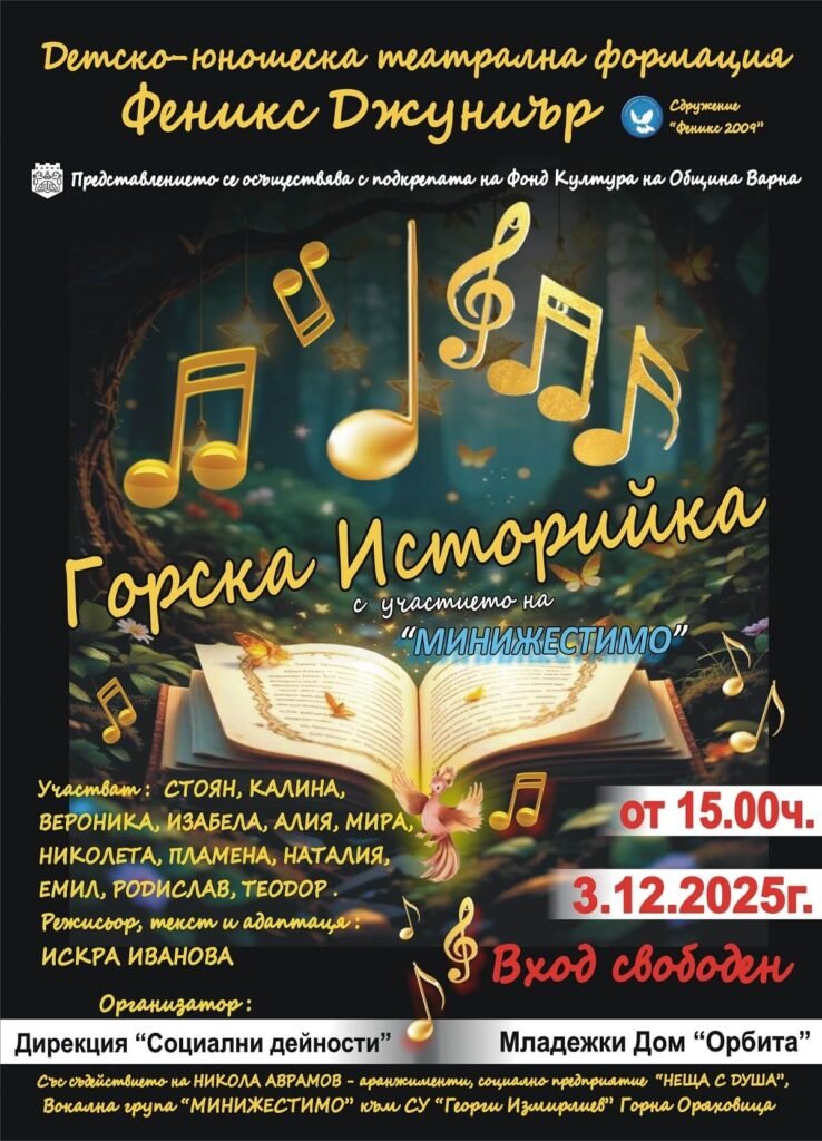 Представлението ще се състои на 3 декември 2025 г., от 15:00 до 17:30 ч., в Концертна зала на Младежкия дом, бул. „Цар Освободител“ № 27. Събитието е отворено за всички граждани и гости на града.