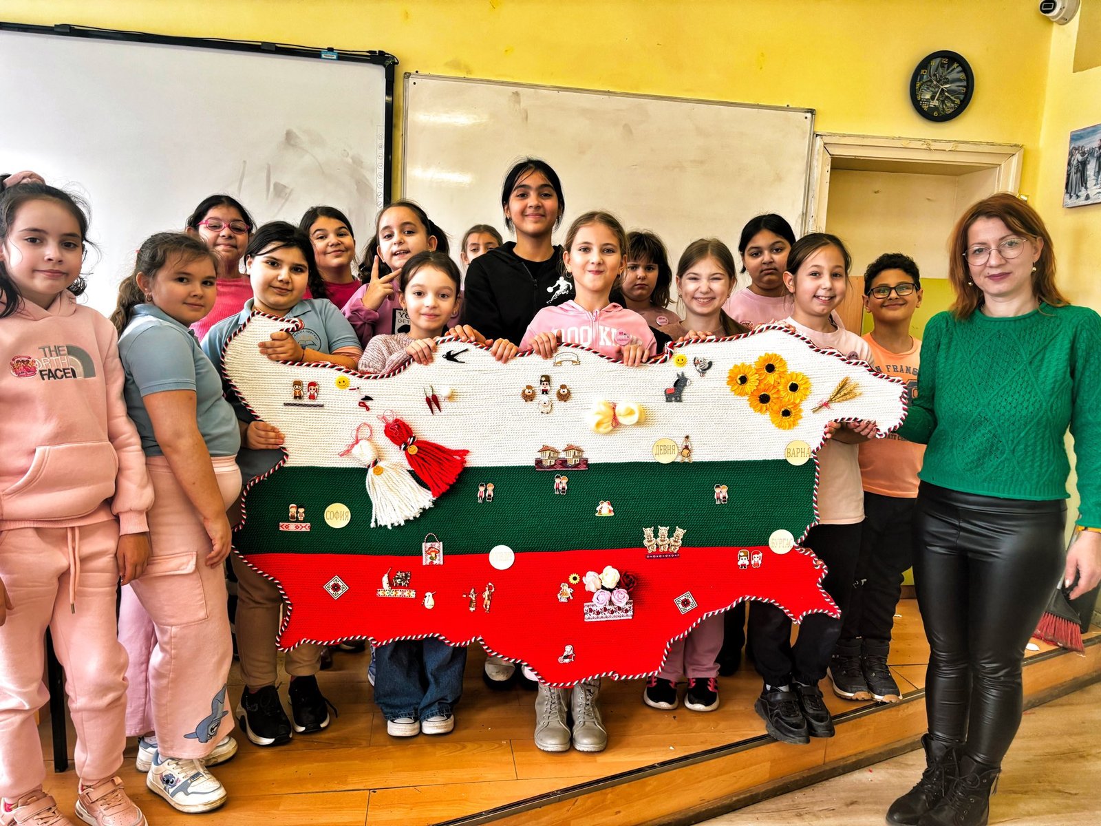 Под ръководството на Кристина Мръзкава от Варна, популярна не само като майстор със златни ръце, но и човек с голямо сърце, деца от СУ “Васил Левски” в Девня изработиха уникална карта на България, която ще бъде включена в първомартенския базар на училището с благотворителна цел, научи СайтЪТ.