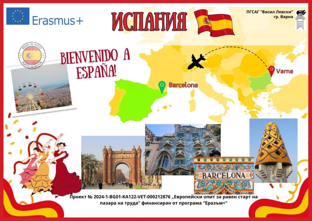 Ученици и учители от Професионалната гимназия по строителство, архитектура и геодезия „Васил Левски“ във Варна ще участват в образователна мобилност в град Барселона, Испания в периода 27.06.2025 г. – 12.07.2025 г. Тя ще бъде проведена в изпълнение на проекта „Европейски опит за равен старт на пазара на труда”, финансиран от програма „Еразъм+“. Общият му бюджет е 79 047 евро. Това съобщиха от Областния информационен център във Варна.