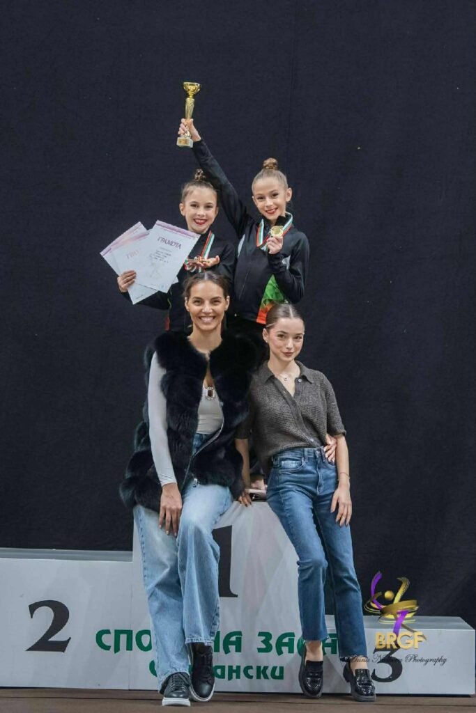 При 11-годишните втори отборно се наредиха Катерина Панова и Ива Петкова. В тази възраст участва и Йоанна Маринова. Ива е носителка на бронзови медали в многобоя и на обръч, а Катерина стана осма без уред.