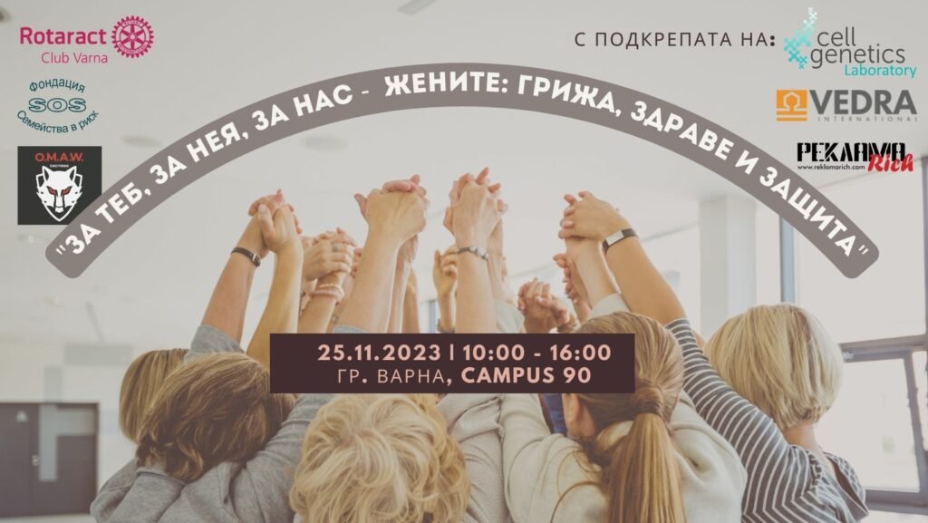 25 ноември е Международен ден за елиминиране на насилието срещу жените – нямаше как да не почетем по-нежната страна на света , като разкажем за жените и грижата за тях! Това съобщиха за СайтЪТ организаторите на семинара “За Теб, за Нея, за Нас – Жените: Грижа, Здраве и Защита” – Rotaract Club Varna и Фондация “SOS-семейства в риск”,.