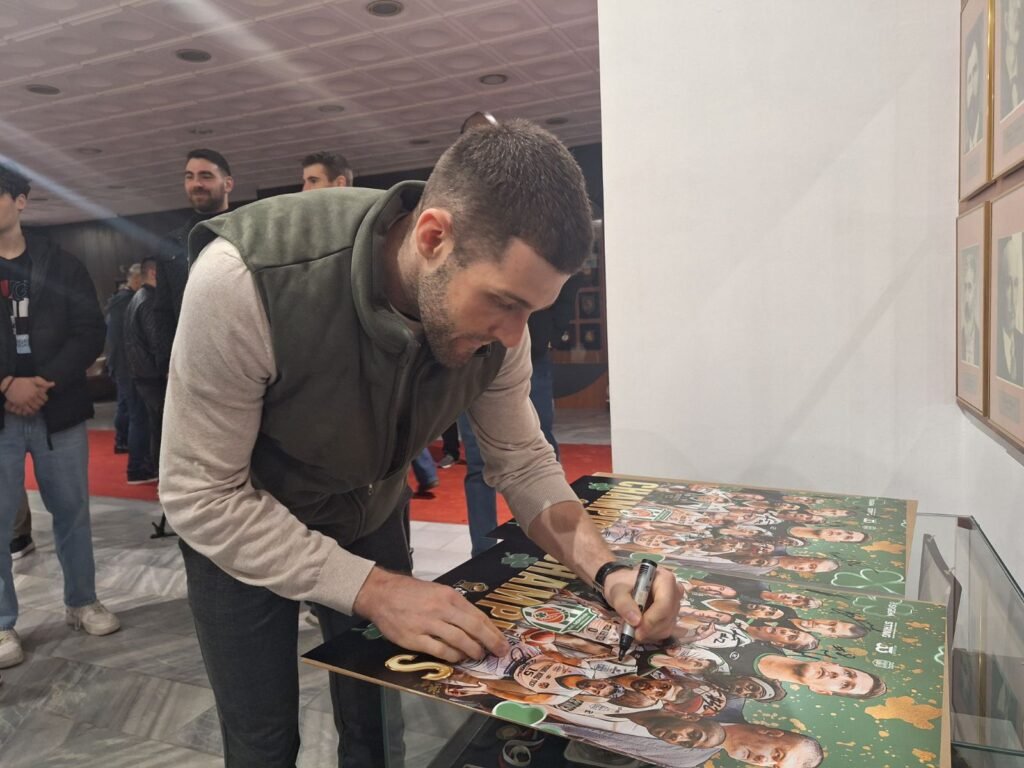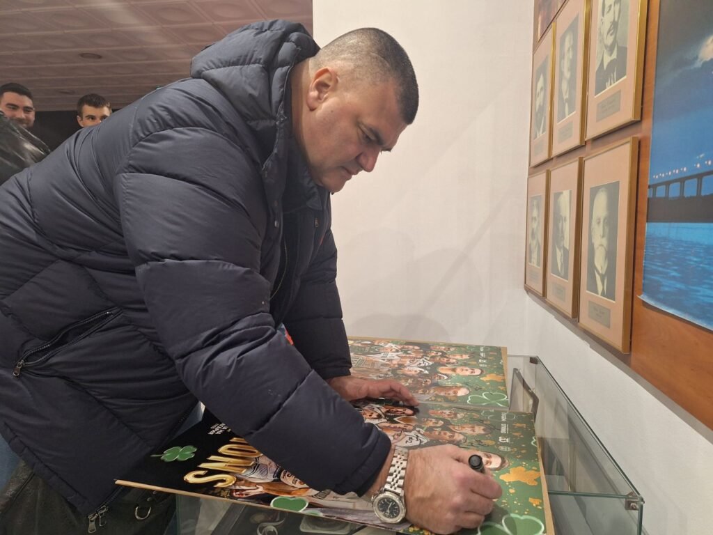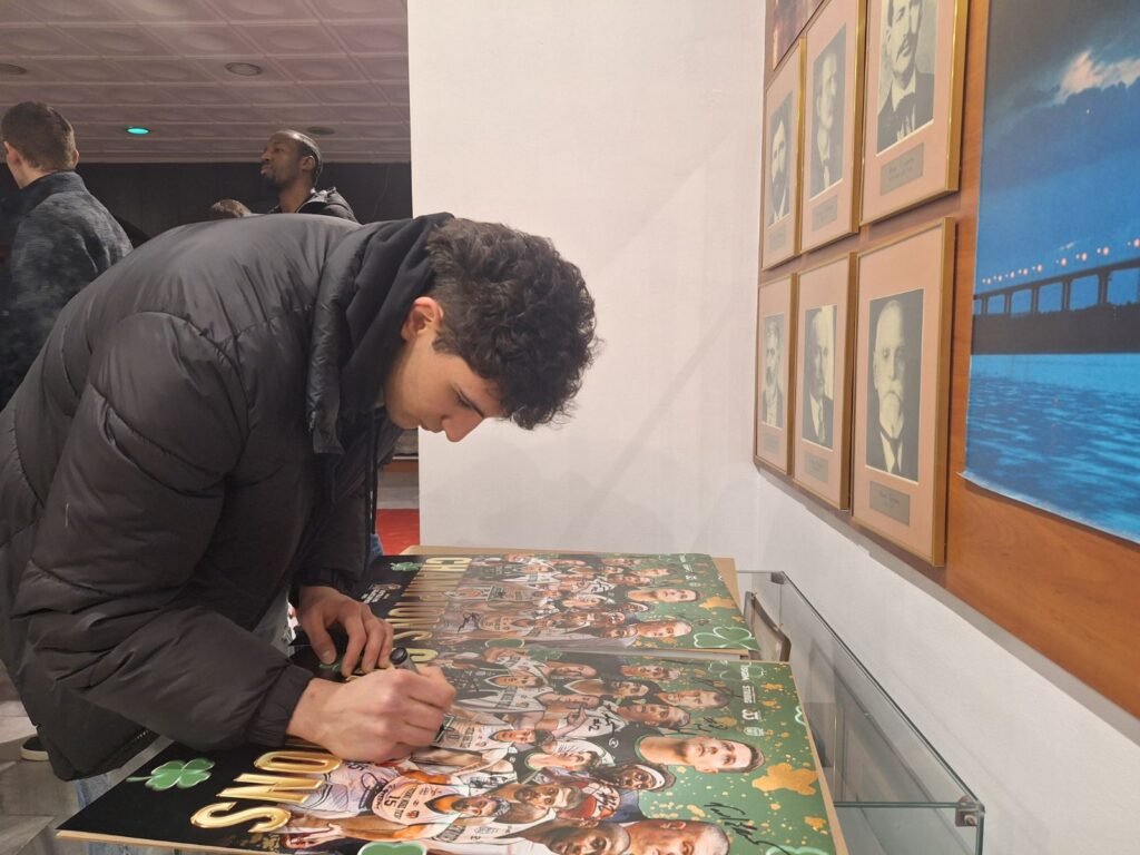 Кметът получи шарж и баскетболна топка с автографи от отбора, а той връчи на спиритисти почетен плакет и литография Спортна Варна.