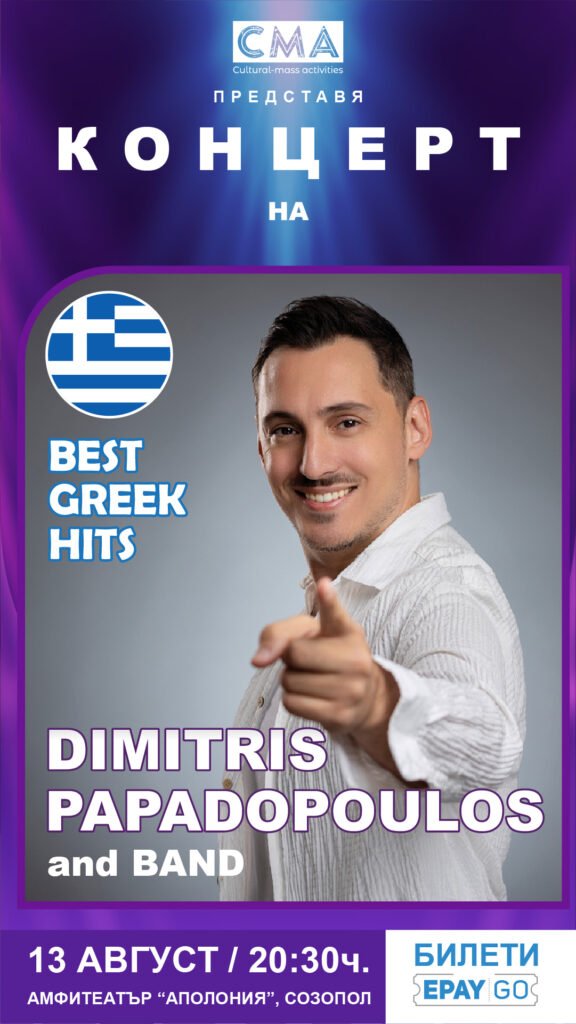 На 13 август 2025 г. амфитеатър „Аполония“ в Созопол ще се превърне в сцена на горещи емоции и неповторимо музикално изживяване. Един от най-обичаните гласове на гръцката сцена – Dimitris Papadopoulos – ще представи на българската публика богат репертоар от златни класики и съвременни гръцки хитове.