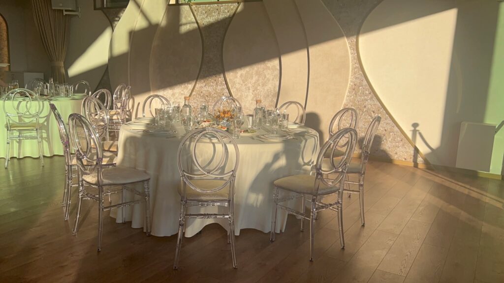 Залата впечатлява със своя изчистен дизайн – просторна, без нито едно стъпало и нито една колона, което допринася за усещане за свобода и елегантност. С нейния 7-метров таван, тя съчетава усещането за простор с уютната атмосфера, която всяко празненство заслужава.
