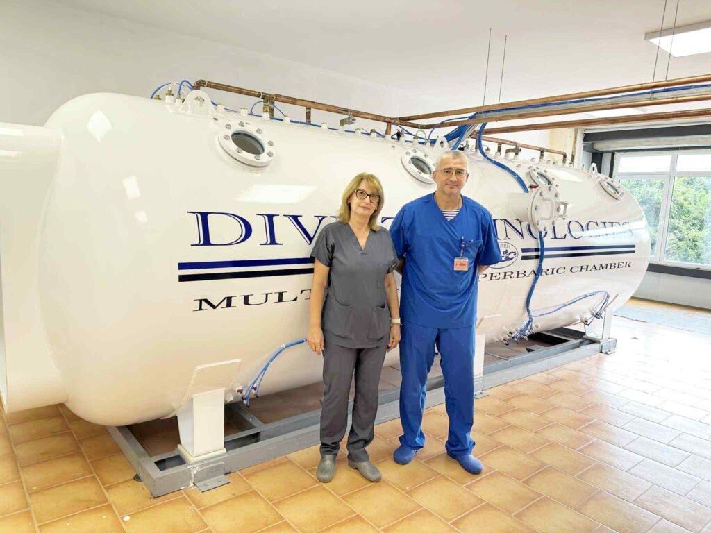 „Ние сме водещ център по хипербарна медицина. Дейността ни обхваща тренировки с водолази, лечение на пострадали при гмуркане и терапия с хипербарна оксигенация на пациенти с остри и хронични състояния“, коментира д-р Милена Янева, началник на отделението.