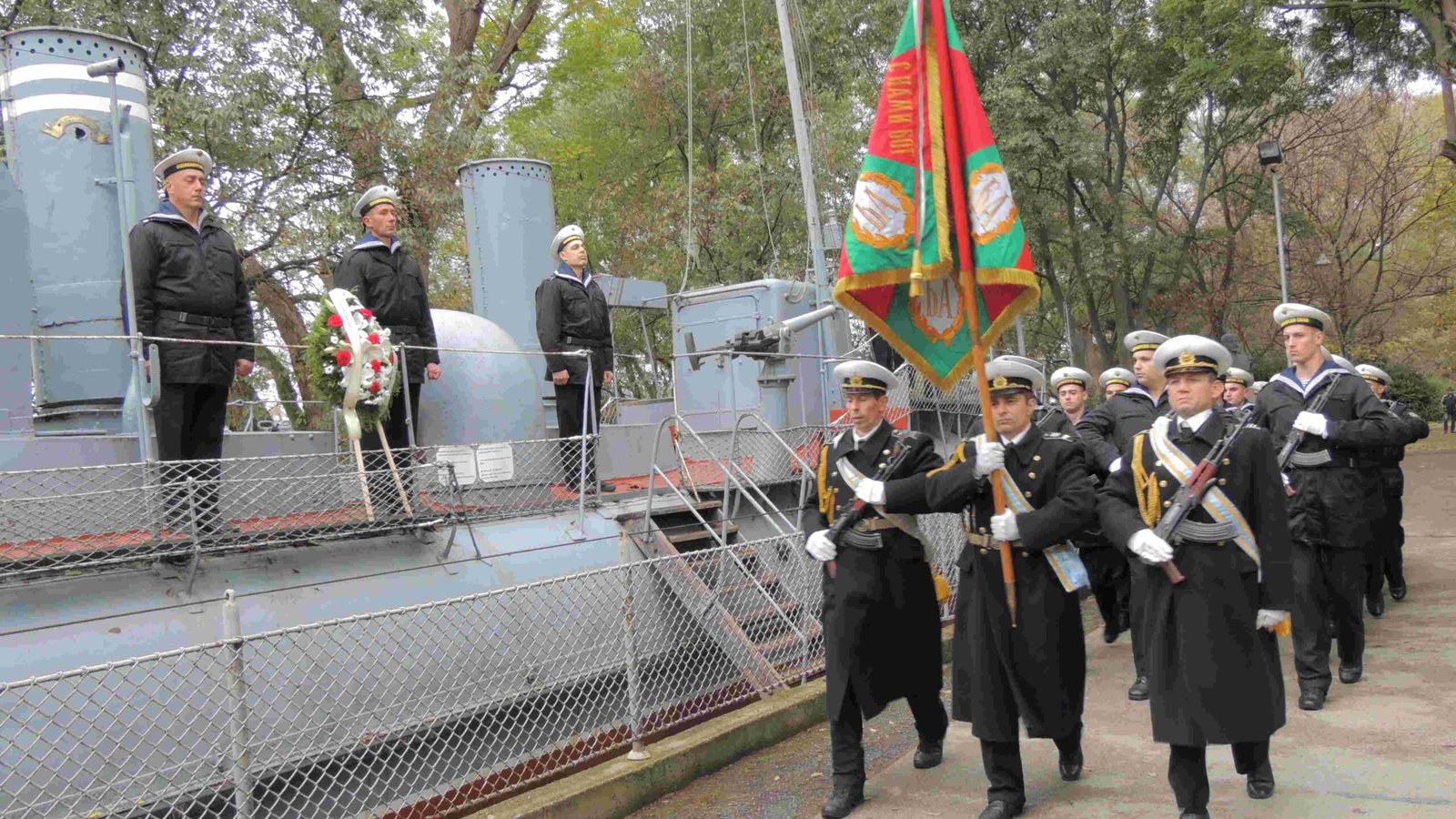 Строят на почетния караул от състава на Военноморските сили беше приет от заместник-командира на Военноморските сили флотилен адмирал Ваньо Мусински.