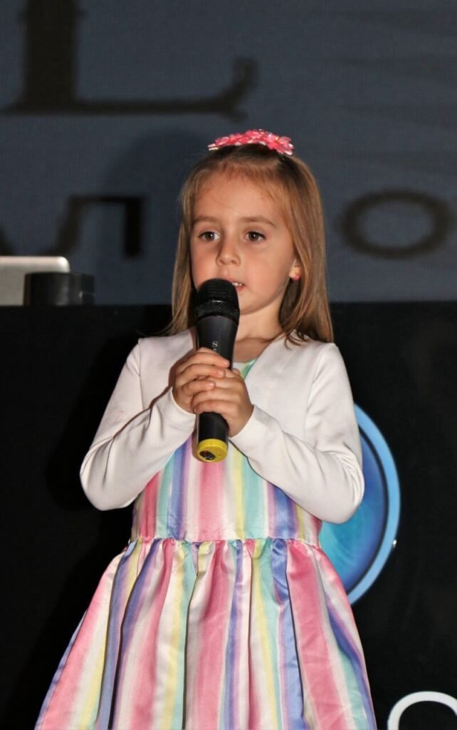 Докато в началото заспивала, омагьосана от музиката, в един момент станала и взела микрофона. Така станало ясно, че ще остане за дълго с любов в сърцето към музиката. Първата й сценична изява е на 3.