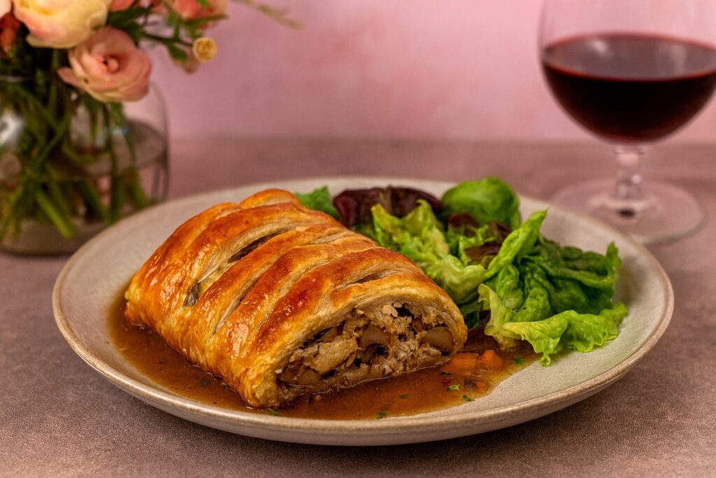 Щруделът не е само сладък. В кулинарната класика той може да бъде и изискано солено ястие – с месо, зеленчуци и ароматни подправки. Този пилешки щрудел с гъби е идеален за гости или семейна вечеря. Впечатлява с визия, а вкусът му съчетава пухкаво бутер тесто, сочно печено пиле и кремообразен пълнеж с гъби и подправки.