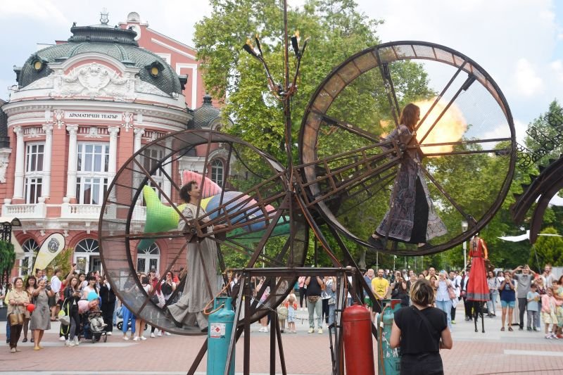 По-късно на площад „Независимост“ последва уличният спектакъл „Пънк шоу пропан“ – с акробатични изпълнения и огнени ефекти.