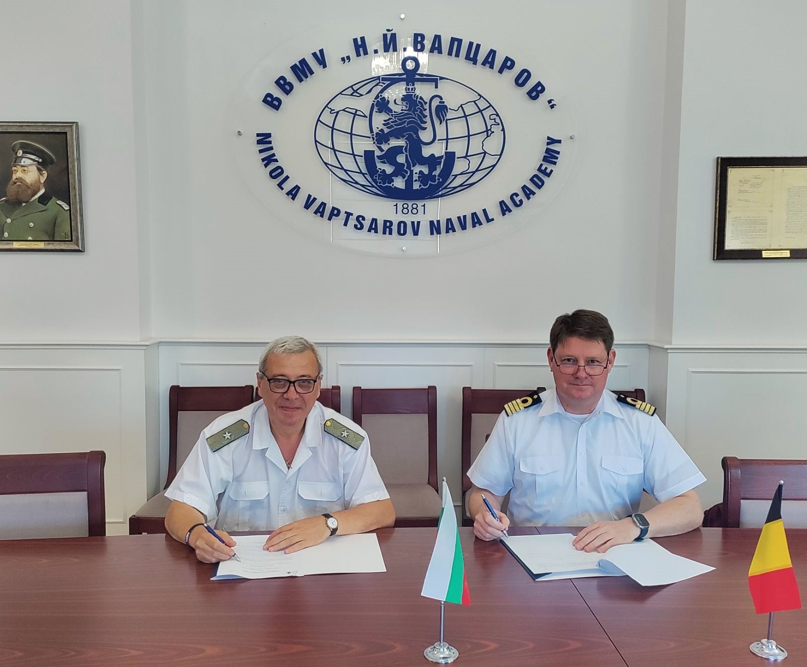 Меморандум за сътрудничество бе подписан между Висшето военноморско училище „Н. Й. Вапцаров“ и Морската академия в Антверпен, Белгия. Под документа подписи положиха началникът на ВВМУ – флотилен аадмирал проф. д-р Калин Калинов и директорът на Морска академия Антверпен д-р Йоан ван Схерен.