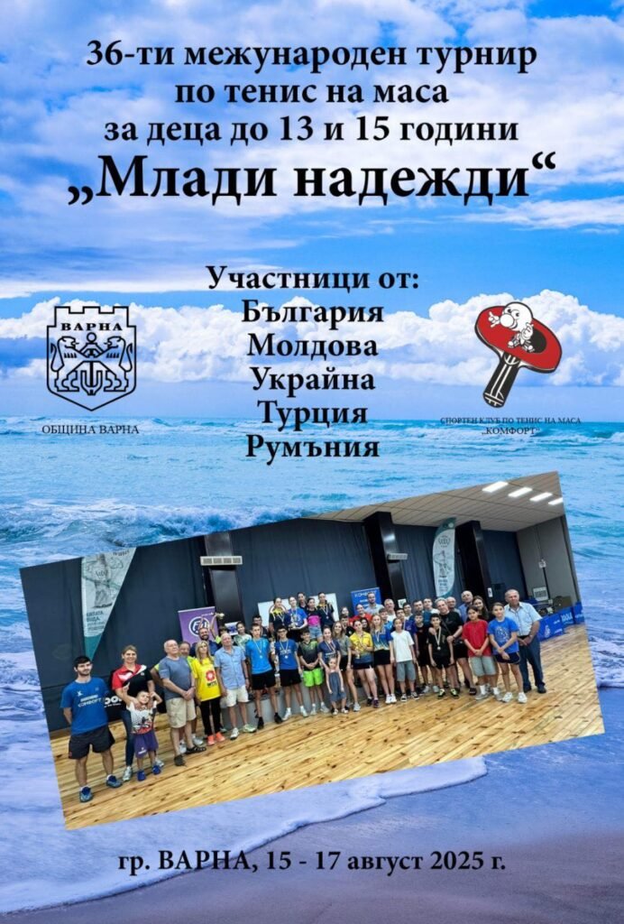 Илия Коев анонсира и останалите спортни събития от програмата за празника на Варна. Едно от тях е 36-ти Международен турнир по тенис на маса за подрастващи „Млади надежди“, който ще се проведе от 15 до 17 август в Двореца на културата и спорта. До момента заявки за участие са подали 140 състезатели на възраст между 13 и 15 години от цялата страна, както и гости от Румъния, Молдова, Украйна, Турция и Люксембург.
