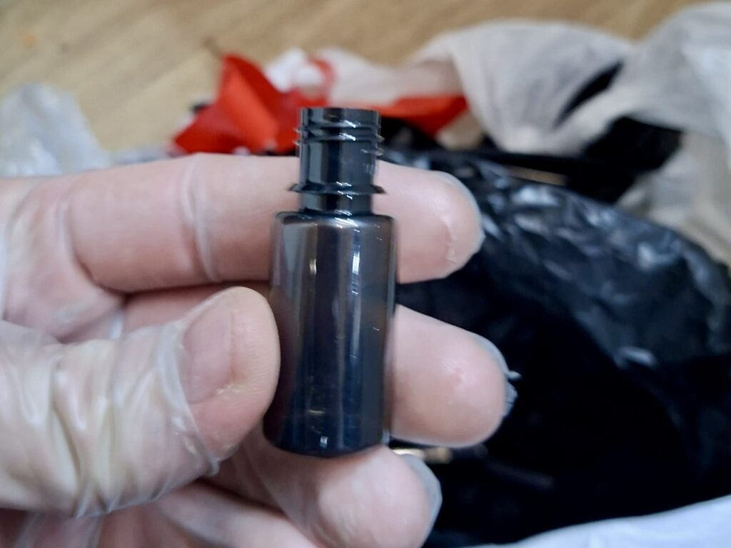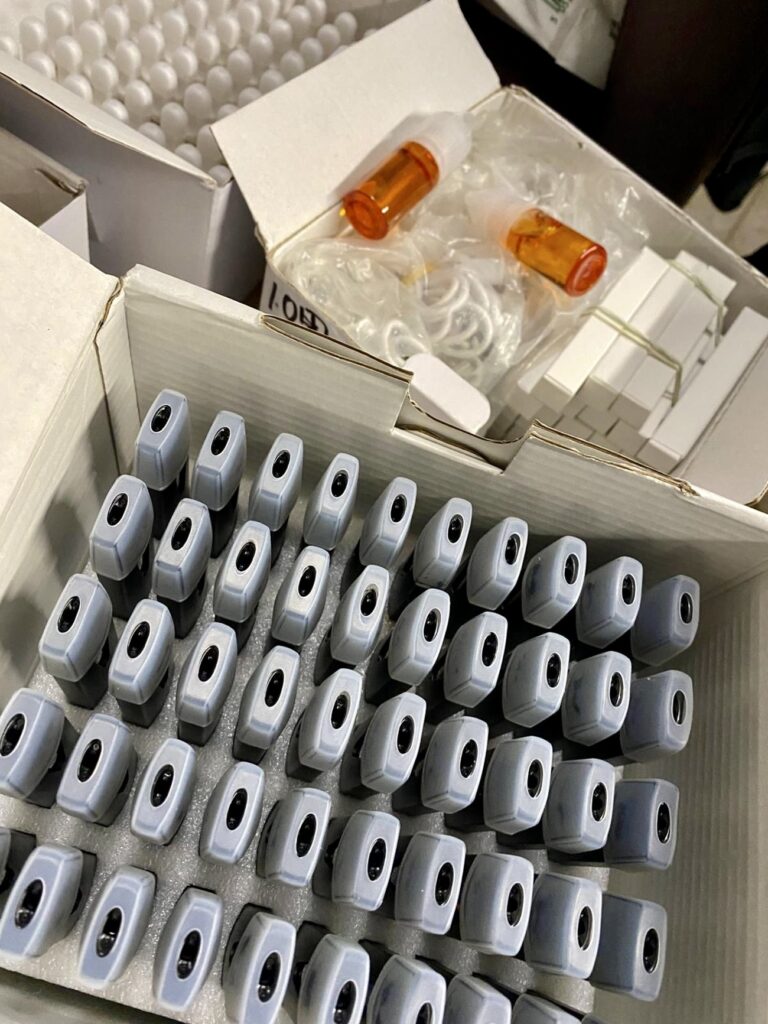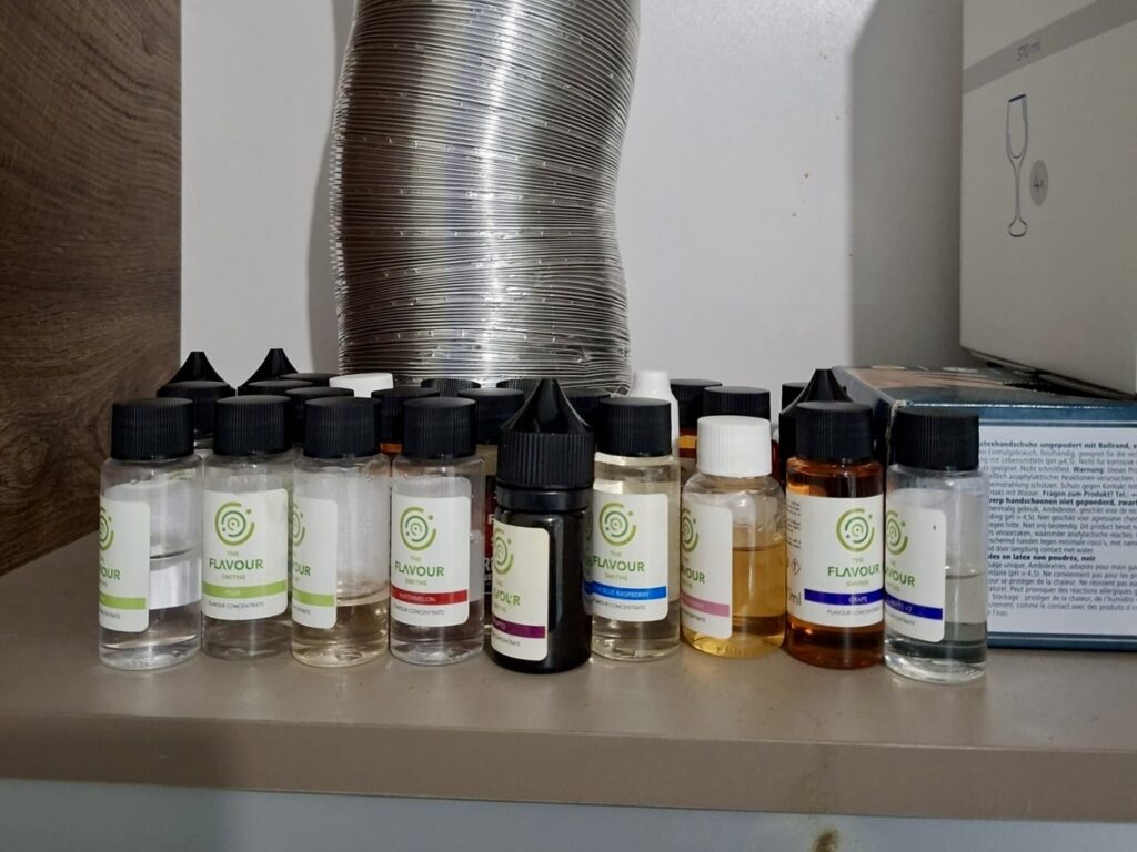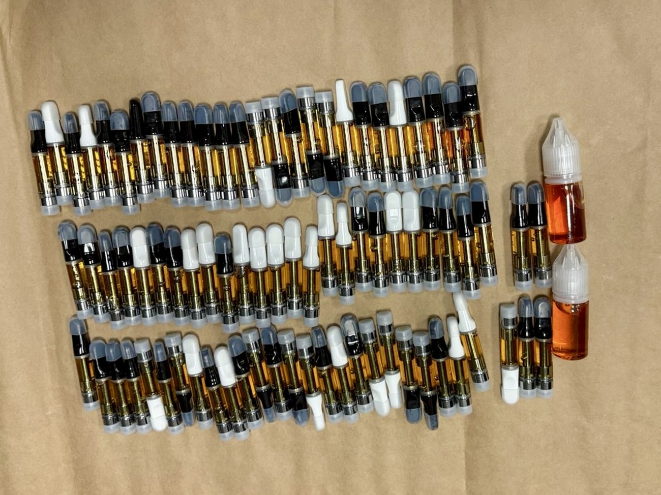 При извършените претърсвания на 14 имота и 2 автомобила са иззети голям брой веществени доказателства: метална бутилка с тегло 1140 грама, съдържаща твърдо смолисто вещество, реагирало на канабиноид, 389 пълнители с вместимост 1 мл с течност, съдържаща канабиноид, 72 електронни цигари (вейп) с течност с канабиноид, две капсули от по 10 мл, съдържащи същата субстанция. Установени са още 130 грама марихуана, 16 пакетчета чай, съдържащ CBD, козметика и соли за вана с канабиноиди, множество празни пълнители за електронни цигари и капсули, както и консумативи за приготвянето им – чаши, спринцовки, аромати, терпен, електронна везна, както и товарителници за пратки и документи, които имат отношение към воденото производство.